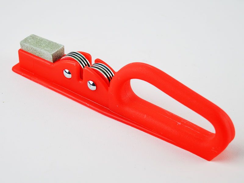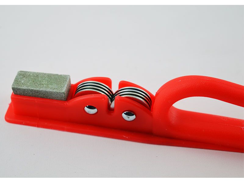 de un afilador en forma de v y una piedra para afilar en su extremo, para que