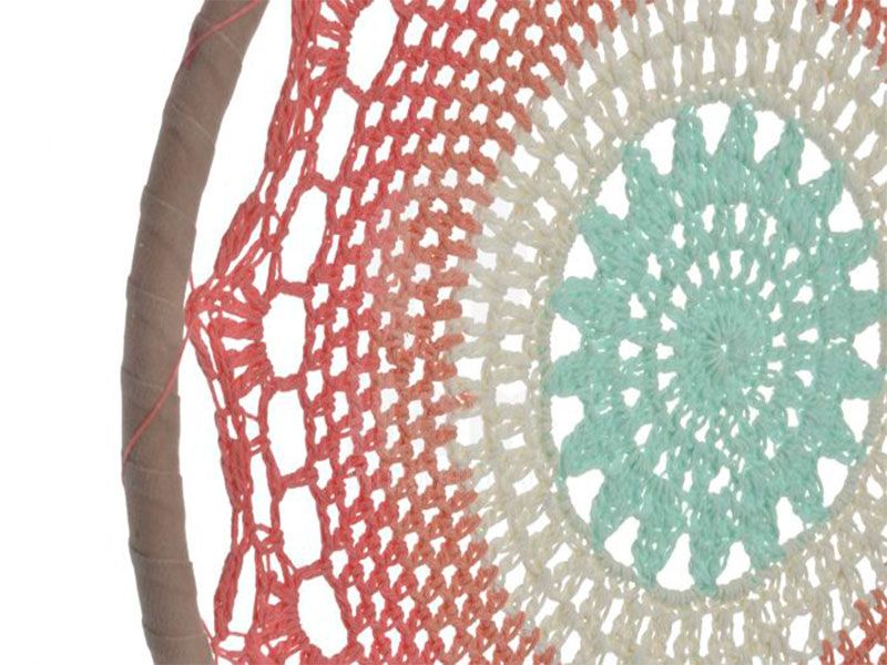 Atrapasueños con la tela fabricada en algodón, una tela multicolor con rojo amarillo y verde para atrapar los malos sueños y evaporarlos dejando pasar solo las buenas energías y limpiando así el ambiente de tu hogar.
